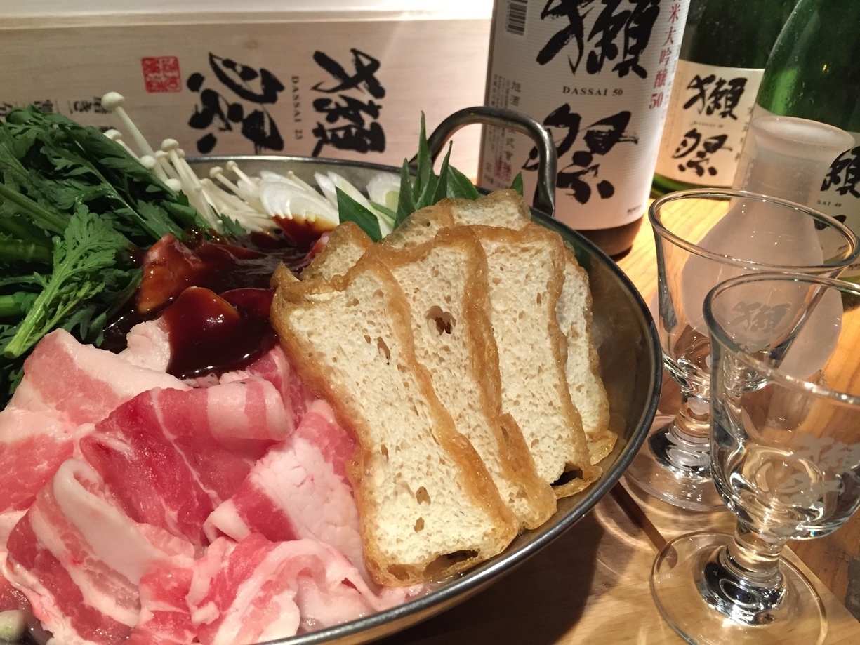 相模豚・栃尾揚げ・下仁田葱の味噌すき鍋を囲んで「色んな日本酒飲み放題(獺祭含む)」
